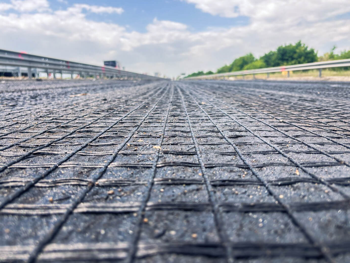 • Wydłużoną żywotność nawierzchni: zespolenie wzmocnienia z warstwą asfaltową ogranicza spękania zwiększając trwałość konstrukcji. Dłuższe cykle utrzymaniowe oznaczają znaczące zmniejszenie kosztów użytkowania oraz wymierną redukcję emisji CO₂.