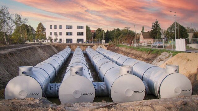 Zabudowę przeprowadza wykwalifikowany zespół montażowy. Proces montażu jest szybki: w przypadku mniejszych obiektów może zostać zrealizowany w zaledwie jeden dzień. Pojedyncze segmenty instalacji można łączyć w ciągi, aby uzyskać wymaganą pojemność retencyjną.